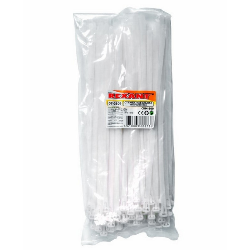 Стяжка (хомут) Rexant 300x7.5 мм белая 100 штук в упаковке (07-0309) Внешний вид и/или характеристики товара могут быть изменены производителем в соответствии с производственным процессом.