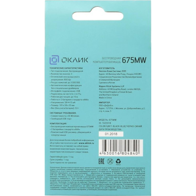 Мышь компьютерная Oklick 675MW черная/синяя (675MW) Внешний вид и/или характеристики товара могут быть изменены производителем в соответствии с производственным процессом.