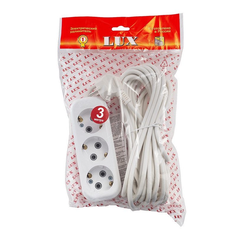 Удлинитель LUX У3-Е-03 3 розетки 3 м с заземлением Внешний вид и/или характеристики товара могут быть изменены производителем в соответствии с производственным процессом.