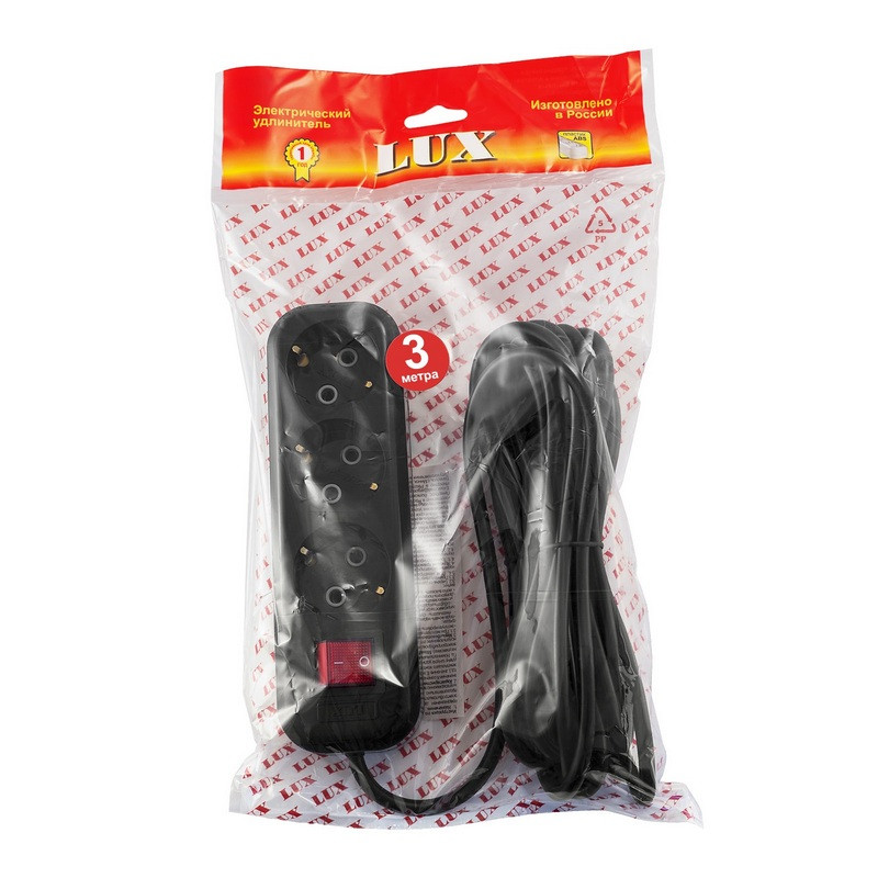 Удлинитель LUX У3-ЕВК-03 3 розетки 3 м с заземлением и выключателем Внешний вид и/или характеристики товара могут быть изменены производителем в соответствии с производственным процессом.