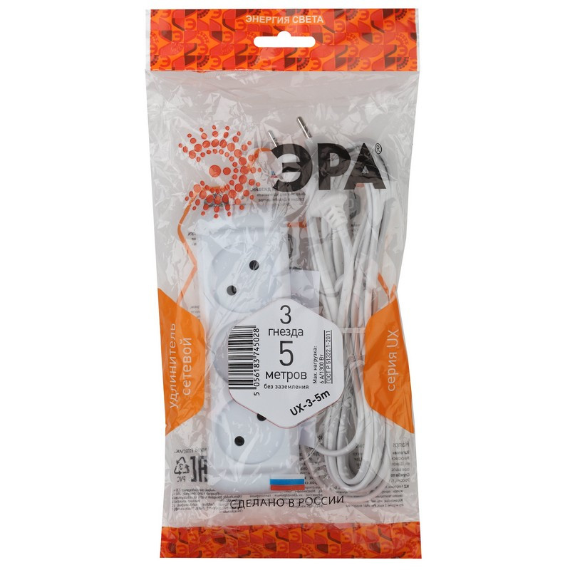 Удлинитель Эра UX-3-5m(M) 3 розетки 5 м Внешний вид и/или характеристики товара могут быть изменены производителем в соответствии с производственным процессом.