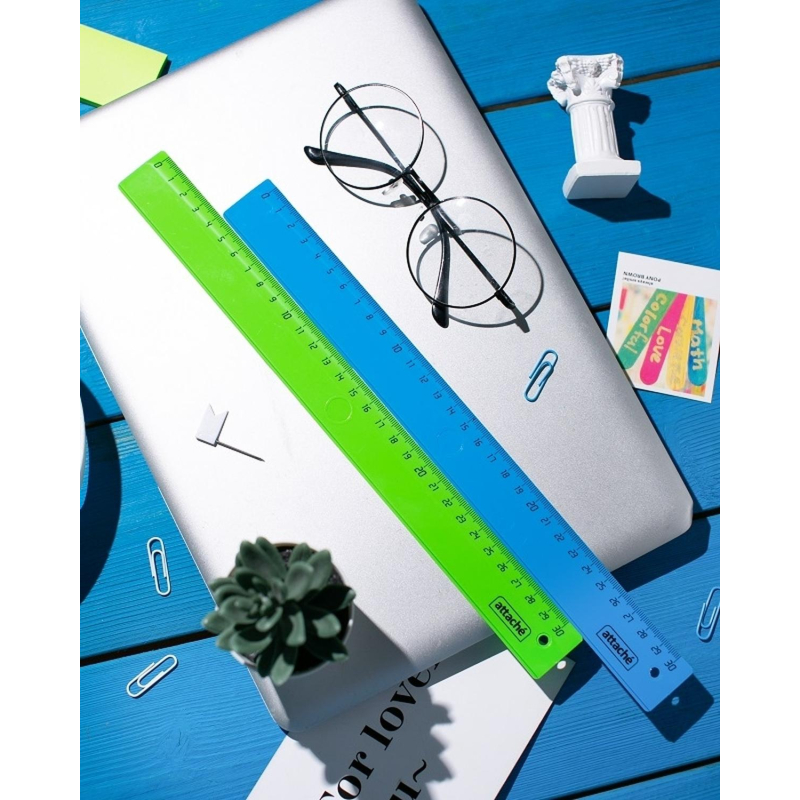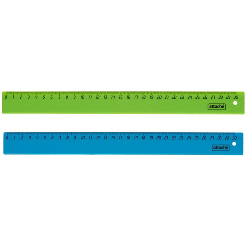 Линейка Attache 30 см пластиковая зеленая (2 штуки в упаковке) Линейка является незаменимым помощником при чертежных работах в образовательных учреждениях и офисах, а также дома. Линейка Attache 30 см. Выполнена из пластика. Деления наносятся с использованием специальных чернил для оптимальной стойкости. Легко читать: наглядные индикаторы. Цвет: синий и зеленый. В упаковке две штуки.
