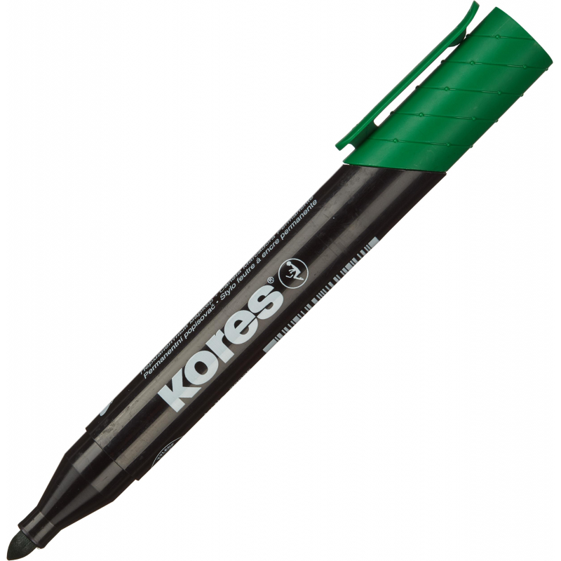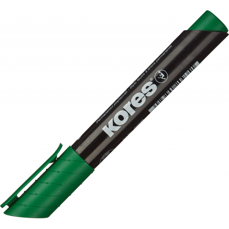 Перманентный маркер Kores 20935 подходит для письма на любых поверхностях. Эргономичный корпус изготовлен из пластика. Круглый наконечник обеспечивает толщину линии от 1.5 до 3 мм. Размеры маркера: диаметр 17 мм, длина 141 мм. Страна производства - Чехия. Нестираемые чернила. Цвет - зеленый. Снятый колпачок не потеряется благодаря тому, что во время работы его можно надевать на верхнюю часть маркера. Устойчивость к высыханию при открытом колпачке до 10 дней. Чернила на спиртовой основе.