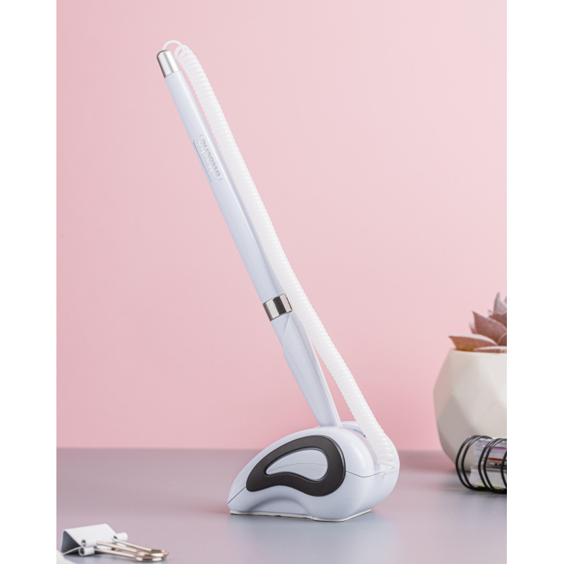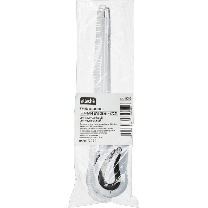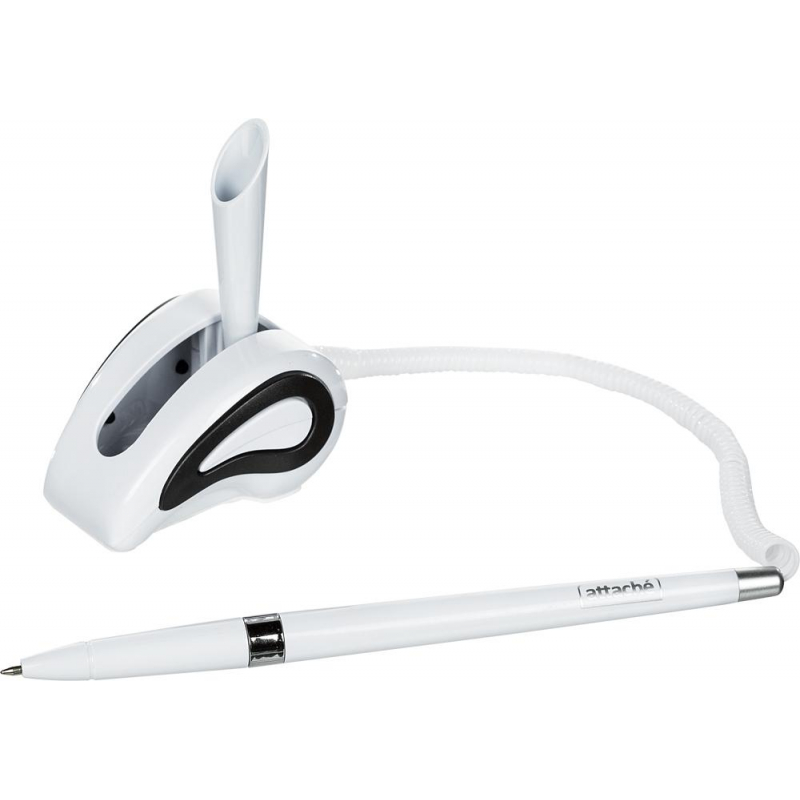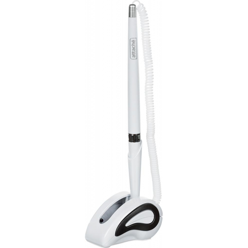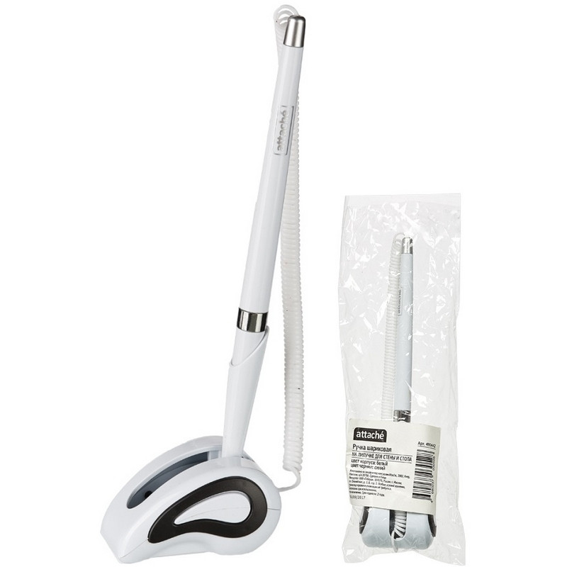 Шариковая ручка на подставке Attache с синим цветом чернил. Модель выполнена в белом металлизированном корпусе с деталями серебристого цвета. Специально разработана для офисов и учреждений. С одной стороны она крепится к пластиковой пружине, а с другой - к специальной подставке с липким основанием для установки на столах или тумбах. Можно крепить как на горизонтальные, так и на вертикальные поверхности. Толщина линии стержня составляет 0.5 мм. Длина стержня - 135 мм. Для фиксации ручки на поверхности удалите слой защитной пленки с клейкого основания.