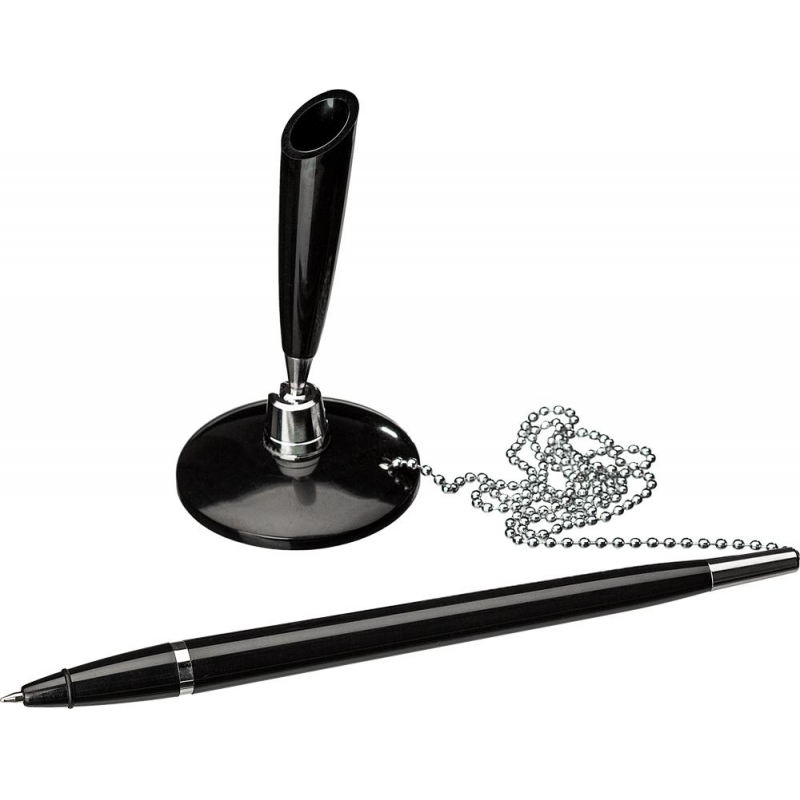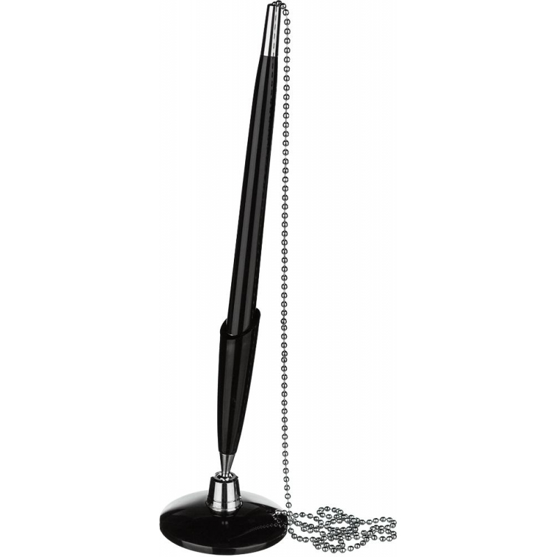 Шариковая ручка Beifa в подставке с синим цветом чернил. Модель в черном корпусе специально разработана для офисов и различных учреждений: с одной стороны крепится к 58-сантиметровой металлической цепочке, а с другой - к специальной подставке с липким основанием для установки на столах или тумбах. Толщина линии письма составляет 0.5 мм. Возможна замена стержня. Для фиксации ручки на поверхности удалите слой защитной пленки с клейкого основания. Дополнительные стержни для ручки вы сможете найти во вкладке ?Расходные материалы?.