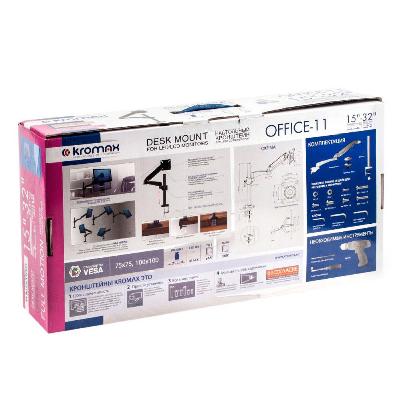 Кронштейн Kromax OFFICE-11 Внешний вид и/или характеристики товара могут быть изменены производителем в соответствии с производственным процессом.