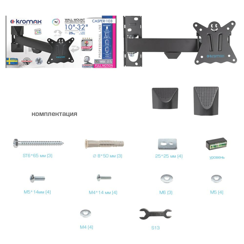 Кронштейн Kromax Casper-103 черный (CASPER-103, 20170) Внешний вид и/или характеристики товара могут быть изменены производителем в соответствии с производственным процессом.