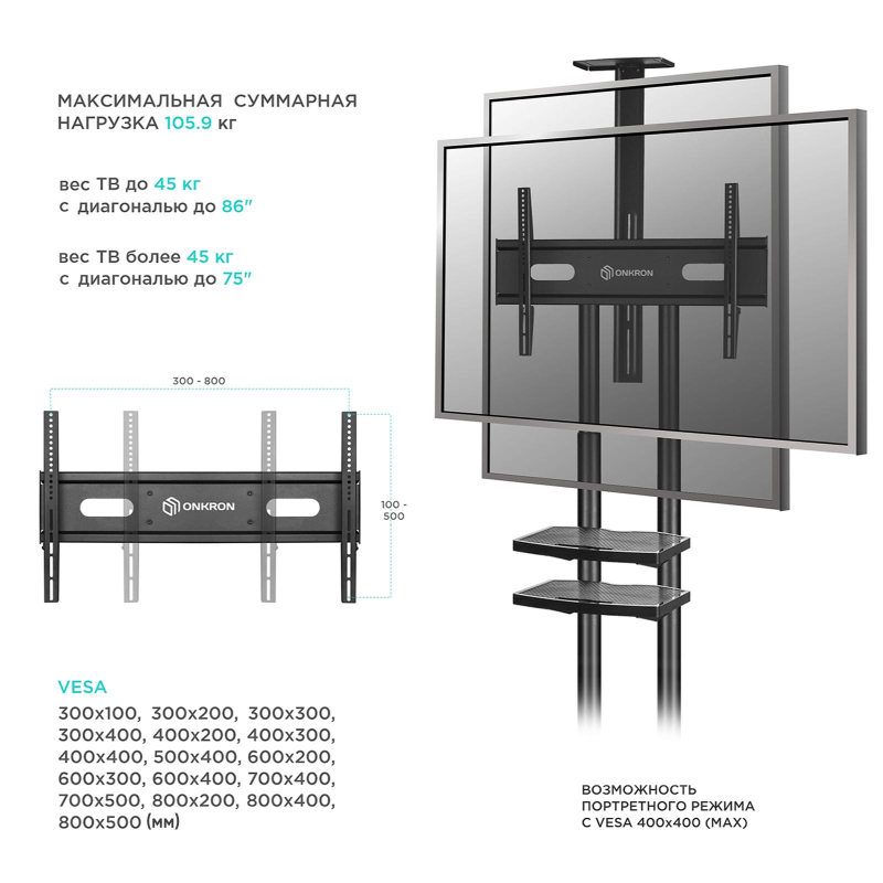 Стойка для ТВ с кронштейном Onkron TS1881 Внешний вид и/или характеристики товара могут быть изменены производителем в соответствии с производственным процессом.