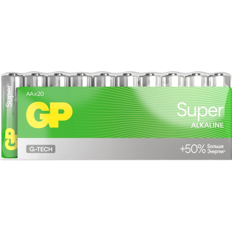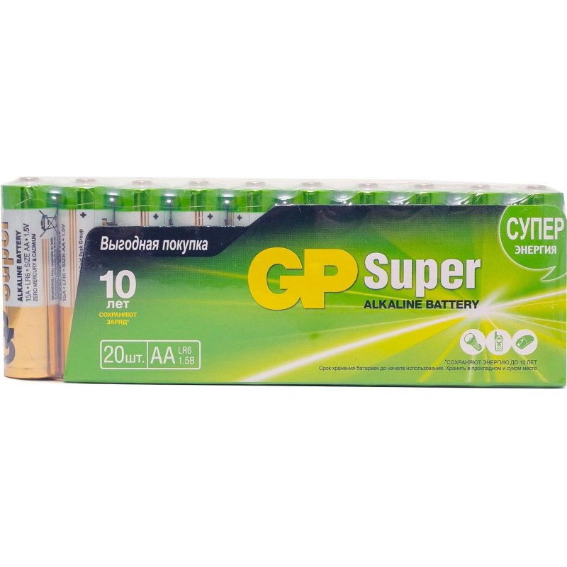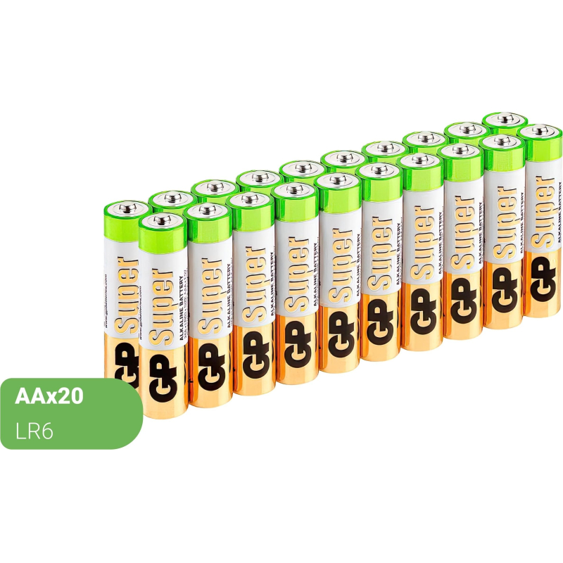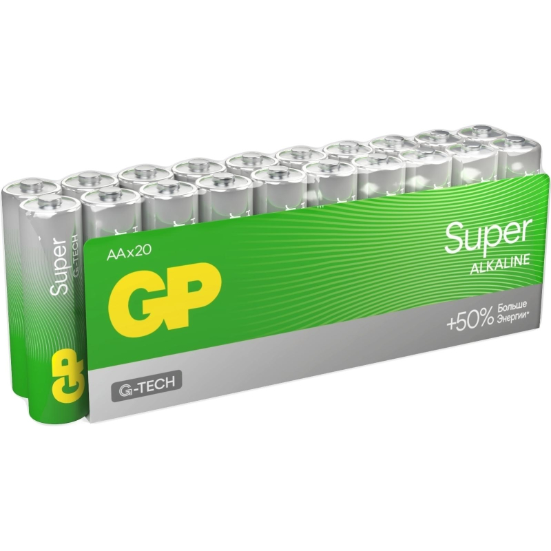 Батарейка АА пальчиковая GP (20 штук в упаковке) Батарейки GP меняют дизайн - потребительские свойства, модели, артикулы, весогабаритные характеристики, тип упаковки остаются без изменений. Внешний вид и/или характеристики товара могут быть изменены производителем в соответствии с производственным процессом.
