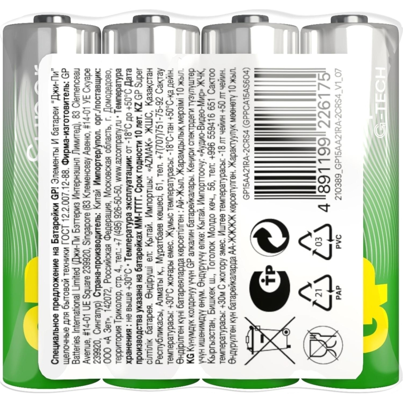 Батарейка ААА мизинчиковая GP Super (4 штуки в упаковке) Батарейки GP меняют дизайн - потребительские свойства, модели, артикулы, весогабаритные характеристики, тип упаковки остаются без изменений. Внешний вид и/или характеристики товара могут быть изменены производителем в соответствии с производственным процессом.