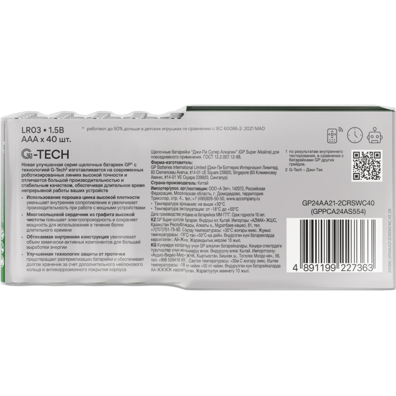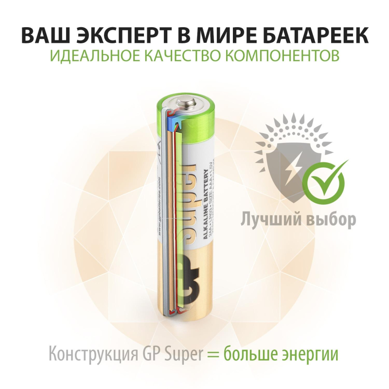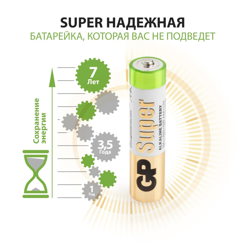 Батарейка ААА мизинчиковая GP (40 штук в упаковке) Батарейки GP меняют дизайн - потребительские свойства, модели, артикулы, весогабаритные характеристики, тип упаковки остаются без изменений. Внешний вид и/или характеристики товара могут быть изменены производителем в соответствии с производственным процессом.