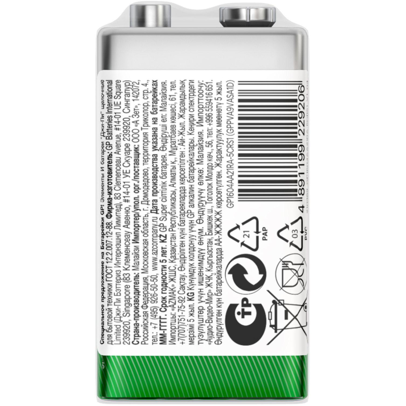 Батарейка крона (6LR61) GP Super (1604A-OS1) Внешний вид и/или характеристики товара могут быть изменены производителем в соответствии с производственным процессом.